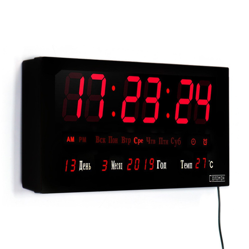 Ժամացույց պատի մեծ թվային լուսադիոդայինց՝ երքին ջերմաստիճանի ցուցադրմամբ, ամսաթվով, չափսերը 33*20 սմ..