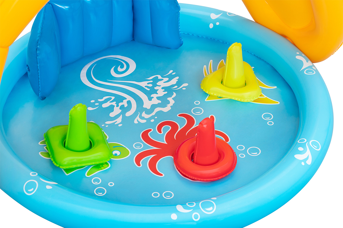 Չափսը՝ 1.12մ x 89սմ x 76սմ (44″ x 35″ x 30″)Հարմար է 6 ամսական և բարձր երեխաների համար։Ջրային խաղերի ծանոթացումը նպաստում է.– նուրբ մոտորիկայի հմտությ..