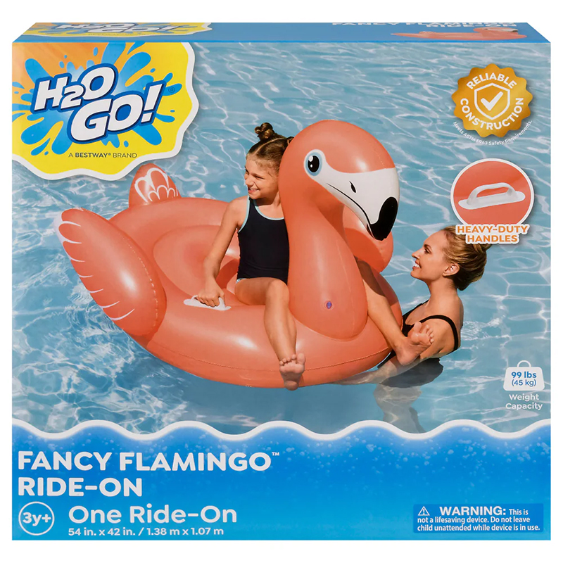 Կենսուրախ, պայծառ ջրային ֆլամինգո Ամուր բռնակներ, որոնք կօգնեն ձեզ բարձրանալ և բռնվել։Չափսը՝ 1.38 m x 1.07 m ..