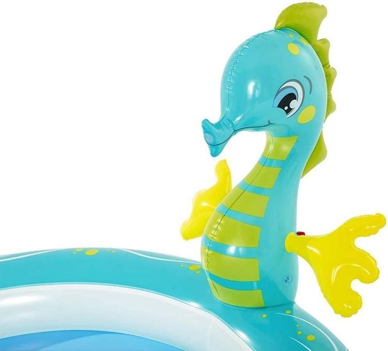 Ցանկանու՞մ եք ձեր երեխային անմոռանալի զվարճություն պարգեւել ձեր այգու գաղտնիության մեջ: Փչովի խաղահրապարակը այն կդարձնի իսկական ժամանցի կենտրոն ձեր երեխայի համար։ Շատրվանով լողավազանը, անկասկած, կուրախացնի ձեր փոքրիկին և կդառնա նրա սիրելի վայրը խաղալու համար: Լողավազանը պատրաստված է փափուկ, բայց դիմացկուն նյութից և հնարավորինս անվտանգ է փոքր երեխաների համար։ Հիմնական գրավչությունը ծովային ձին է, որից ջուրը հոսում է այգու գուլպանը միացնելուց հետո։
