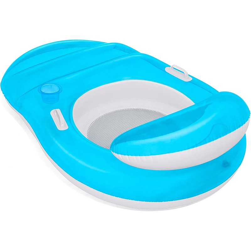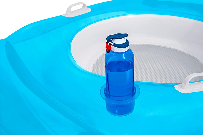 LUXURY INFLATABLE POOL LOUNGER: Բերեք ձեր սիրելի ըմպելիքը և վայելեք հարմարավետ գլխաշորը, երբ լողում եք ձեր սրտով Bestway Luxe Relaxer-ում: Պահպանեք սառը. :՝Ներկառուցված բաժակակիրով դուք կարող եք ջրի մեջ պահել սառը ըմպելիք կամ նույնիսկ արևապաշտպան քսուք՝ խոնավեցված մնալու և ձեր մաշկը պաշտպանելու համար: Երկարակյաց բռնակների շնորհիվ դուք կարող եք ցատկել ջուրը և հեշտությամբ հետ մագլցել օդային ներքնակի վրա: Հեշտ է փչել և պահել, այնպես որ կարող եք այն պահել տանը կամ ձեզ հետ տանել ձեր սիրելի ամառային վայրերը: Bestway Luxe Relax Pool Lounge