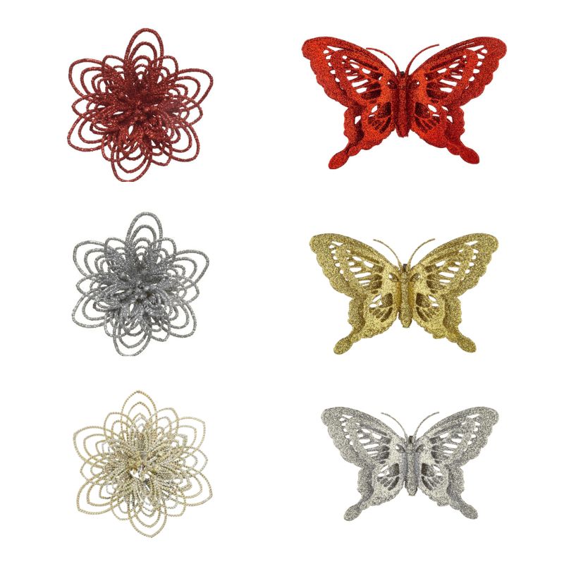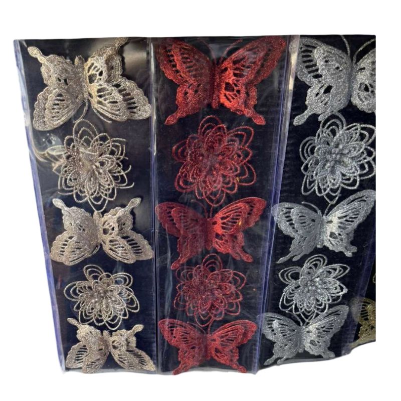 Ամանորյա զարդարանք աստղիկներ և թիթեռնիկներ, տուփում 2-ական