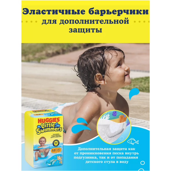 Մանկական տակդիր - վարտիք ջրային Huggies Little Swimmers N5 - N6 (12-18կգ), 11 հատ։Huggies Little Swimmers մանկական տակդիրը՝ փոքրիկին թույլ կտա վայելել..