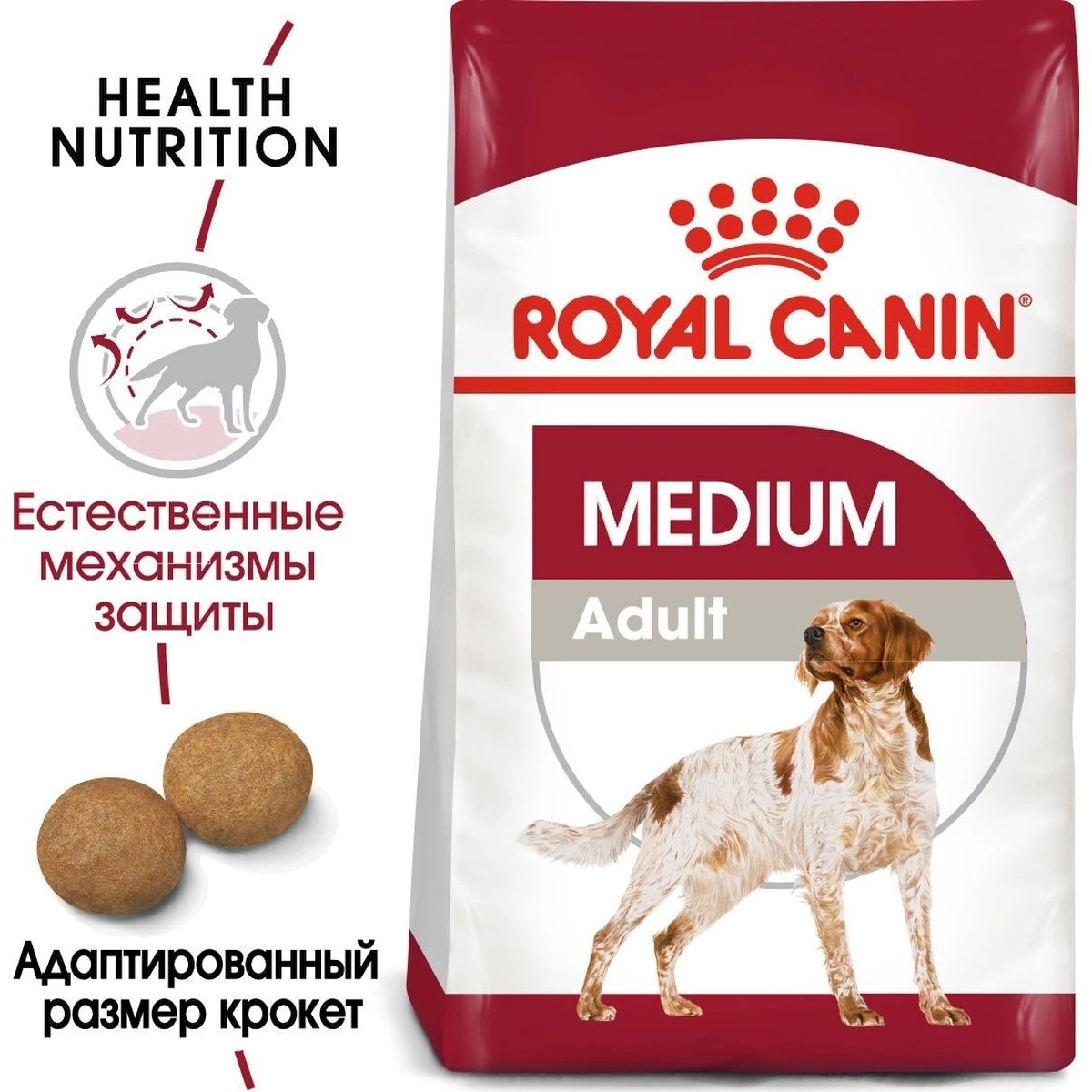 Royal Canin Medium Adult-ը ապահովում է իմունային համակարգի ամրապնդում, մարսողության աջակցություն և փայլուն բուրդ, ինչպես նաև օպտիմալ էներգիա..